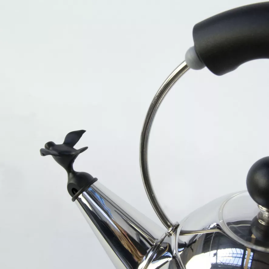 De Alessi Kettle fluitketel (inductie) is ontworpen door Michael Graves.