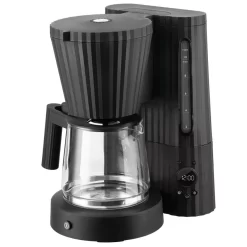 Het Plissé koffiezetapparaat van Alessi is ontworpen door Michele De Lucchi. De koffiemaker heeft een lengte van 28 centimeter, een breedte van 22,5 centimeter en een hoogte van 35 centimeter. De koffiepot heeft een inhoud van 150 centiliter. Het koffiezetapparaat is gemaakt van thermoplastisch hars. Het filter koffiezetapparaat bestaat uit verschillende onderdelen. Het apparaat zelf, een display en verschillende knoppen om het aan en uit te zetten en andere functies te bedienen. Daarnaast is er een verwarmingsplaat, een filterhouder met deksel en een stroomkabel. Verder wordt het geleverd met een Pyrex maatbeker met deksel en polypropyleen handvat, een verwijderbaar waterreservoir met deksel en maatindicatie en een filterhouder met filter en maatindicatie, gemaakt van polypropyleen en mesh. Ook zit er een polypropyleen maatschepje bij dat overeenkomt met één kopje koffie. Om het koffiezetapparaat goed te onderhouden, dien je de filterhouder, het filter, het waterreservoir en de maatbeker schoon te maken met lauwwarm water en niet-schurende schoonmaakmiddelen. Droog ze daarna grondig af met een zachte doek. Het wordt afgeraden om deze onderdelen in de vaatwasser te reinigen. Gebruik voor het schoonmaken van het motorblok een vochtige doek en droog deze vervolgens goed af. Zorg er daarnaast voor dat je het waterreservoir regelmatig leegt en reinigt om te voorkomen dat er zich kalkaanslag of andere vervuiling opbouwt. Het Plissé koffiezetapparaat is verkrijgbaar in verschillende kleuren.