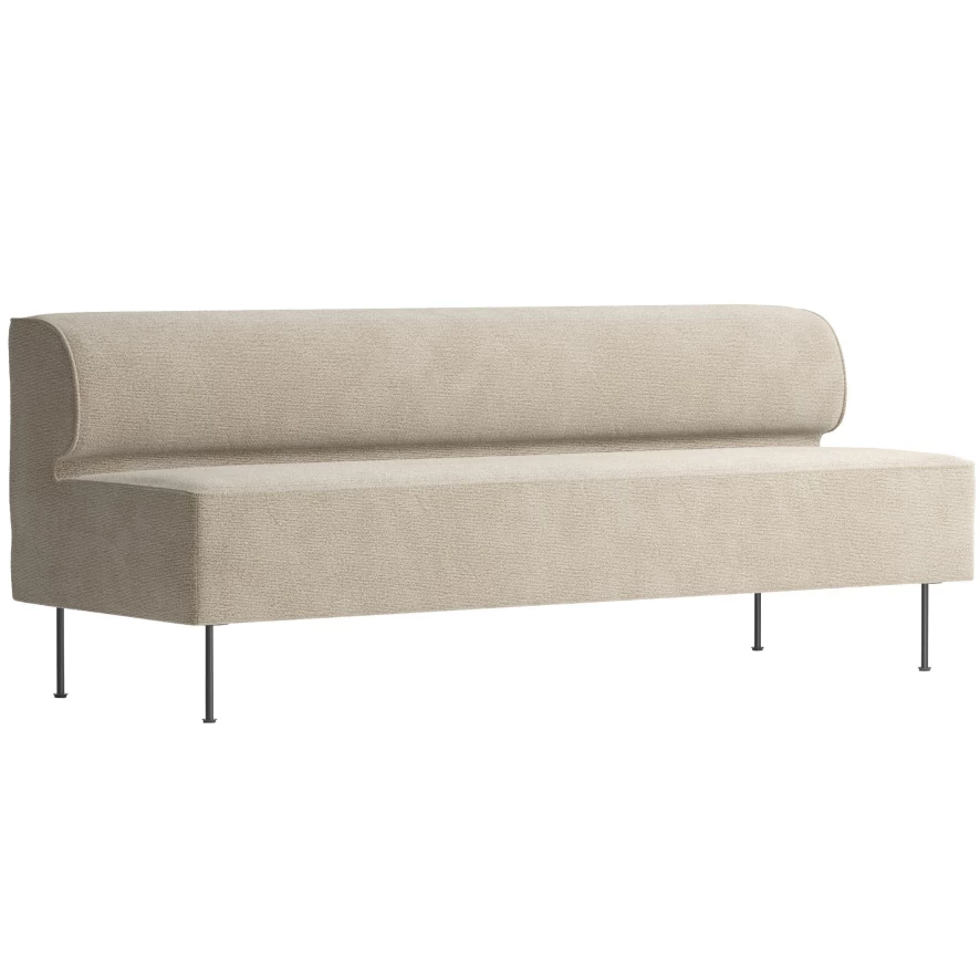 De Eave Dining bank 165 is 79 centimeter hoog, 200 centimeter breed en 59 centimeter diep. De zithoogte van de bank is 48 centimeter. De bank heeft een frame van multiplex, MDF en staal en is volledig gestoffeerd. De bank is beschikbaar in drie kleuren.