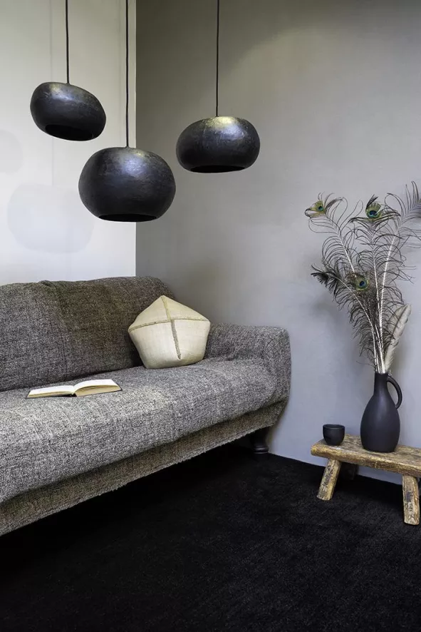 Dit is de Pebble medium hanglamp van Ay Illuminate. De hanglamp is gemaakt van gerecycled karton en is beschikbaar in drie verschillende kleuren: zwart, grijs en terracotta. De lamp is 36 centimeter lang, 27 centimeter breed en 19 centimeter hoog. In de lamp zit een E27 fitting, geschikt voor een lichtbron met een maximaal wattage van 60. Deze lichtbron wordt niet meegeleverd. Naast de verschillende kleuren is de lamp beschikbaar in drie maten: small, medium en large.