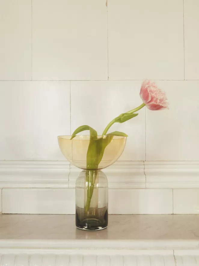 De Torus vaas large van het Deense merk AYTM heeft een diameter van 25 centimeter en een hoogte van 33 centimeter. De vaas is gemaakt van glas. De Torus vaas is niet geschikt voor vaatwasser, wel kan je de vaas met een sopje reinigen. De vaas is verkrijgbaar in verschillende uitvoeringen.