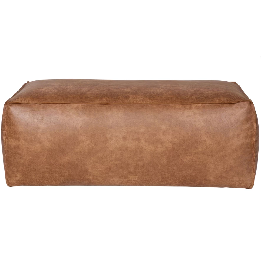 De Rodeo poef van BePureHome is 43 centimeter hoog, 120 centimeter breed en 60 centimeter diep. De poef is gemaakt van eco-leer (een duurzame stof van 70% leer en 30% polyester) met een hoge kwaliteit en is verkrijgbaar in de kleuren cognac en zwart.