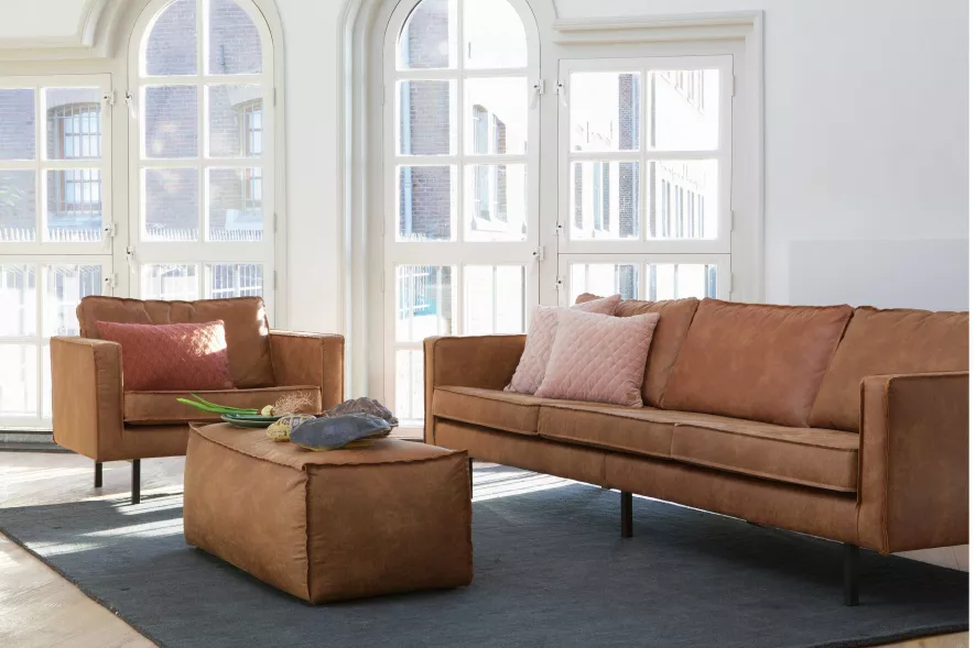 De iconische Rodeo serie maakt gebruikt van duurzaam eco-leder. Wanneer de huiden in de fabriek in patronen worden gesneden, blijven er altijd restanten over. Deze restanten worden vermalen en tot een nieuwe stof verwerkt: recycle leer. Dit product wordt vervolgens gebruikt als onderlaag voor het eco-leder van de Rodeo bank. Deze laag zorgt voor de natuurlijke en unieke uitstraling. Om het leer goed te beschermen wordt er daarna 30% polyester toegevoegd waardoor oneffenheden worden weggewerkt en het een stevige combinatiestof wordt. Op deze werkwijze worden alle restproducten gebruikt en werkt BePureHome mee aan een duurzame toekomst.
