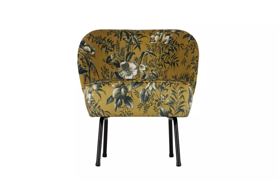 De Vogue fauteuil van BePureHome is 57 centimeter breed, 70 centimeter diep en 69 centimeter hoog. De loungestoel heeft een onderstel gemaakt van metaal met een matzwarte poedercoating. Het frame en de zitting zijn gemaakt van spaanplaat, multiplex en schuim. De fluwelen bekleding is gemaakt van 100% polyester en scoort 100.000 op de schaal van Martindale. Dit maakt de fauteuil geschikt voor intensief woongebruik. De fauteuil is verkrijgbaar in verschillende kleuren en patronen.