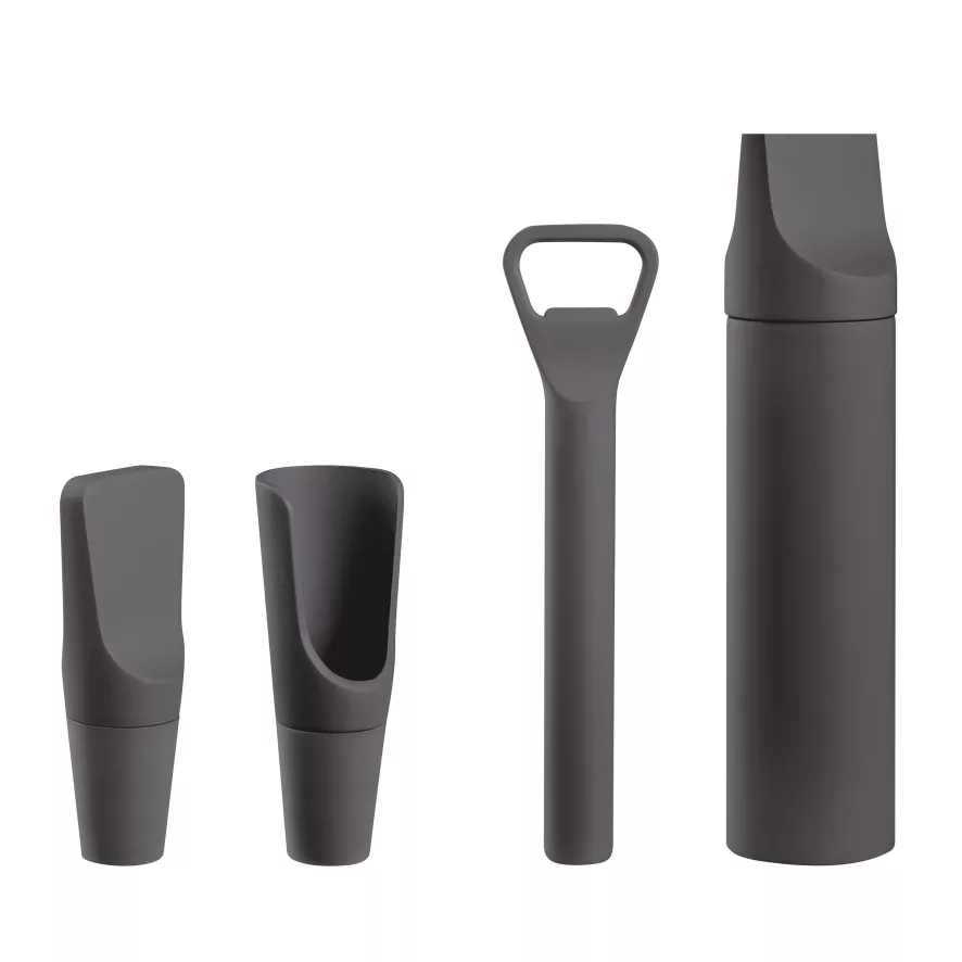 De ILO kurkentrekker van Blomus is ontworpen door kaschkasch. De opener heeft een diameter van 4 centimeter en is 18,5 centimeter lang. De opener is gemaakt van roestvrijstaal en kunststof. De ILO kurkentrekker is verkrijgbaar in meerdere kleuren.
