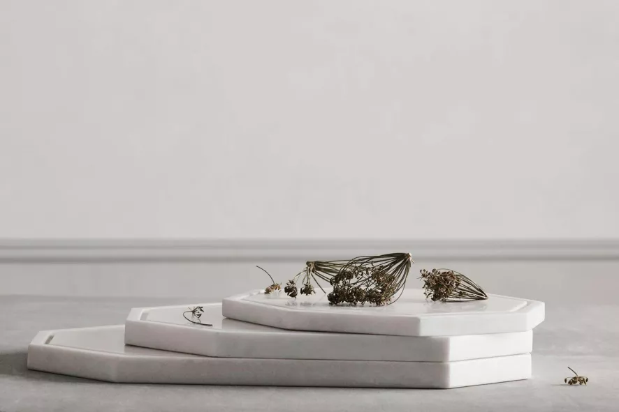 Het Octagon dienblad van Bolia is gemaakt van marmer. Het dienblad heeft een breedte en diepte van 25 centimeter en een hoogte van 1,5 centimeter. Het dienblad is in verschillende kleurvariaties en maten verkrijgbaar.