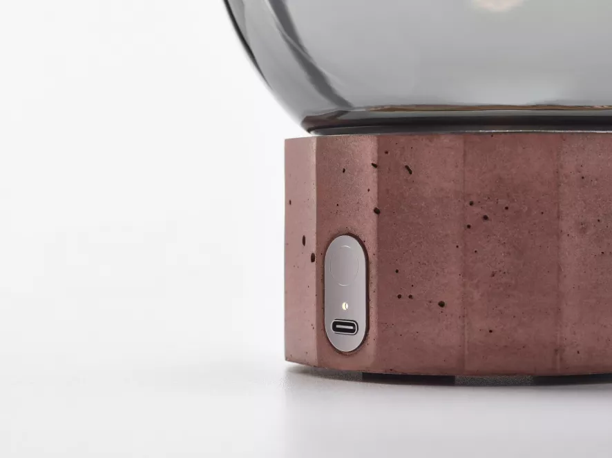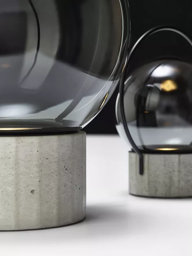 De Sfera tafellamp LED oplaadbaar small van Brokis is ontworpen door Lucie Koldova. De lamp heeft een diameter van 20,6 centimeter en een hoogte van 24,4 centimeter. Sfera is gemaakt van mondgeblazen glas, beton en metaal. Het vakmanschap dat bij de productie wordt toegepast, volgt een eeuwenoude traditie en ervaring van glasblazers. De glazen kap wordt gevormd uit meerdere lagen gesmolten glas, die elk nauwkeurig worden onderzocht alvorens in de mal te worden geblazen. De betonnen voet is vervaardigd uit HPC (High Performance Concrete), dat duurzamer en beter bestand is tegen vocht dan standaard beton. Sfera is voorzien van een geïntegreerde LED module met een verbruik van 2,8 Watt en een kleurtemperatuur van 2700K. Via de ingebouwde touch-dimmer op de voet bepaal je zelf de lichtsterkte. Met een volledig opgeladen batterij brandt Sfera ongeveer 6 uur. Met zijn waterdichtheid van IP44 kun je de lamp zowel binnen- als buitenshuis gebruiken. De Sfera tafellamp is ook beschikbaar in een groter formaat.