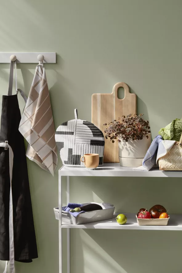 De Herman theedoek van Broste Copenhagen heeft een breedte van 50 centimeter en een lengte van 70 centimeter. De theedoek is gemaakt van katoen en is verkrijgbaar in verschillende kleurvariaties. De Herman collectie heeft ook een bijpassende keukendoek.