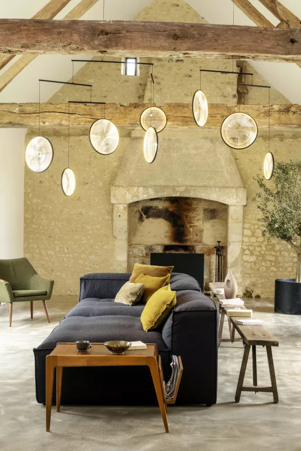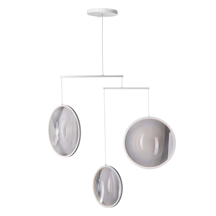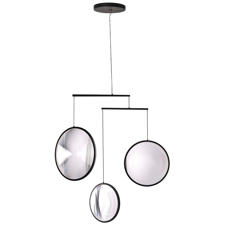 De Focus 3 hanglamp LED van DCWéditions is ontworpen door Yuji Okitsu. De lamp heeft een hoogte van 103,7 centimeter en een breedte van 99,8 centimeter. De verschillende lichtobjecten hebben twee keer een diameter van 36,4 centimeter en één keer een diameter van 28,4 centimeter. Bij de lamp zit een snoer van 3 meter en de lamp weegt 3,3 kilogram. De lichtobjecten zijn gemaakt van PMMA (acryl glas) en aluminium. De lamp is voorzien van een geïntegreerde LED module met een verbruik van 20,4 Watt, een lichtopbrengst van 2040 lumen en een kleurtemperatuur van 2700K. De lamp is dimbaar middels een drie-fase-dimmer. De Focus hanglamp is verkrijgbaar in verschillende varianten.