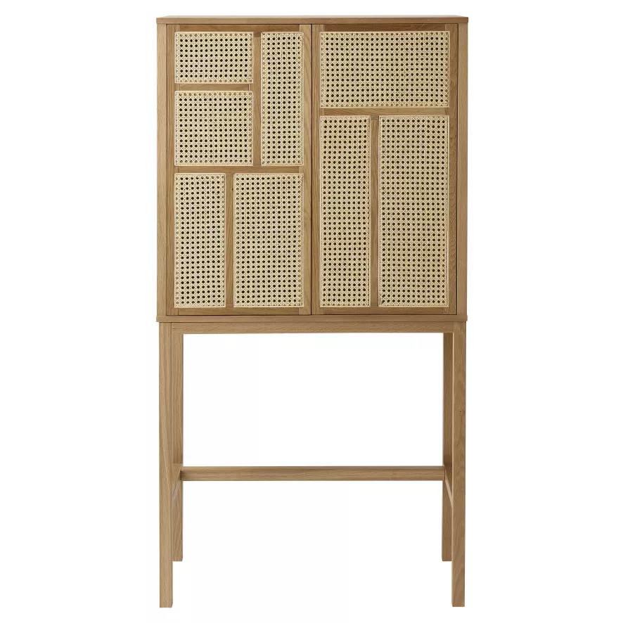 De Air cabinet kast van Design House Stockholm heeft een breedte van 80 centimeter, een diepte van 38 centimeter en een totale hoogte van 154 centimeter. De kast heeft een basis van eikenfineer en is aan de voorzijde afgewerkt met natuurlijk gevlochten rotan. De poten van deze kast zijn gemaakt van massief eikenhout en zijn voorzien van plastic vloerbeschermers. De Air cabinet kast van Design House Stockholm heeft een totaalgewicht van 33 kilogram en is in verschillende varianten verkrijgbaar.