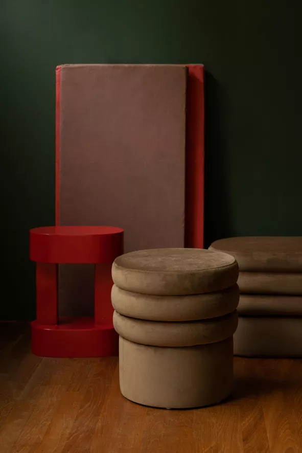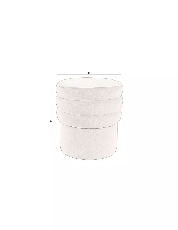 De Aditi kruk van Dutchbone heeft een diameter van 40 centimeter, een hoogte van 44 centimeter en een gewicht van 3,1 kilogram. De kruk heeft een frame gemaakt van MDF grenen, een zitting van polyurethaan schuim en een stoffen bekleding van 100% polyester. De stof scoort 30.000 op de schaal van Martindale en is daarmee geschikt voor normaal woongebruik. De schuim dichtheid bedraagt 27 en de kleurvastheid van de bekleding bedraagt 4. De Aditi kruk is verkrijgbaar in verschillende kleuren.