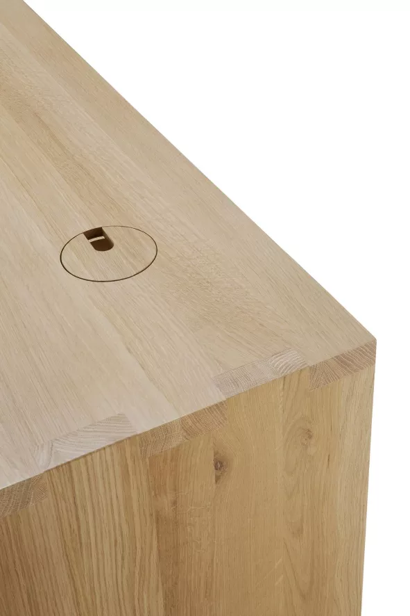 Het U bureau 160×80 van Ethnicraft heeft een breedte van 160 centimeter, een diepte van 80 centimeter en een hoogte van 76 centimeter. Het bureau weegt 55 kilo en is gemaakt van massief eikenhout met een vernisafwerking. Het bureau heeft een draagcapaciteit van 105 kilo. Het bureau is voorzien van geïntegreerd kabelbeheer in het bureaublad. Ethnicraft raadt aan om onderzetters te gebruiken op het bureau, en om vlekken direct te verwijderen met een vochtige doek. Het bureau is verkrijgbaar in verschillende kleurvariaties.