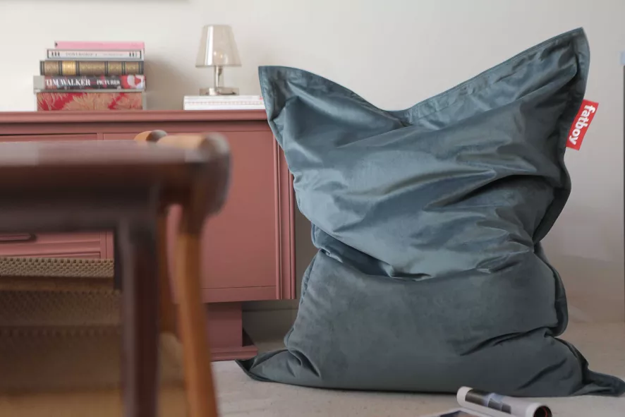 De Original Slim Velvet zitzak van Fatboy is 155 bij 120 centimeter en weegt 5,5 kilogram. De inhoud is 260 liter. De zitzak heeft een buitenkant van 100% polyester en een binnenkant van niet gewoven polyester. De vulling is van polystyreen. Maak de zitzak schoon door met een natte doek het oppervlak zachtjes te deppen. De buitenzak kan je alleen met de hand wassen en strijken op de laagste temperatuur. De zitzak kan niet in de droger. Pas op met scherpe objecten waar de zitzak stuk aan kan gaan. De zitzak is alleen geschikt voor binnen gebruik.