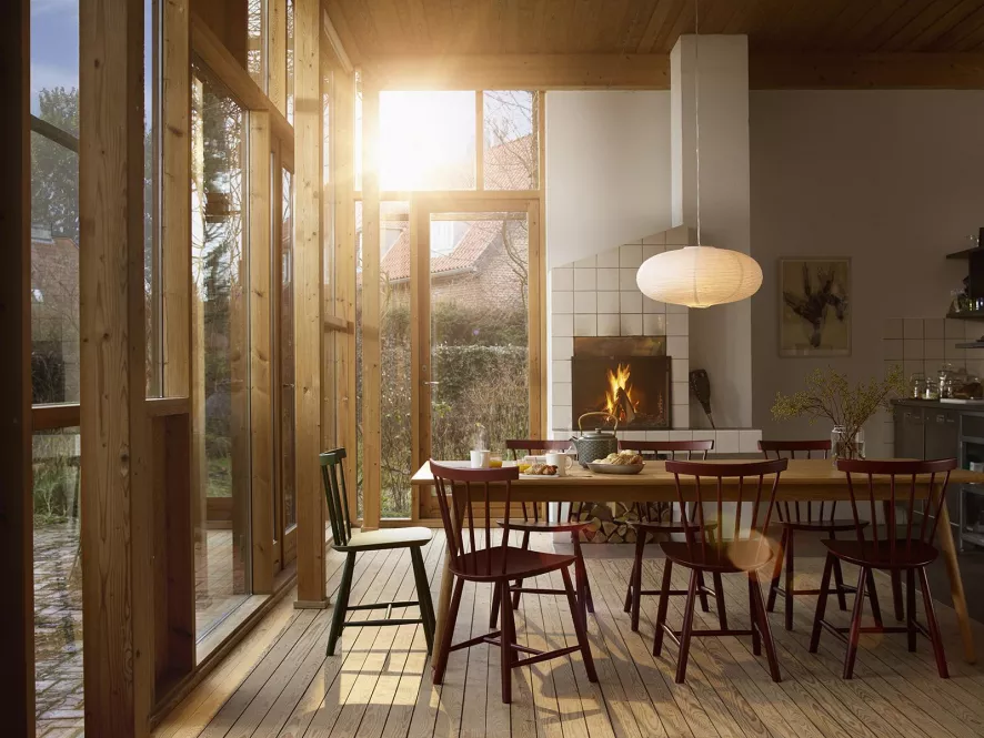 De FDB Møbler J46 eetkamerstoel eiken is ontworpen door Poul M. Volther.