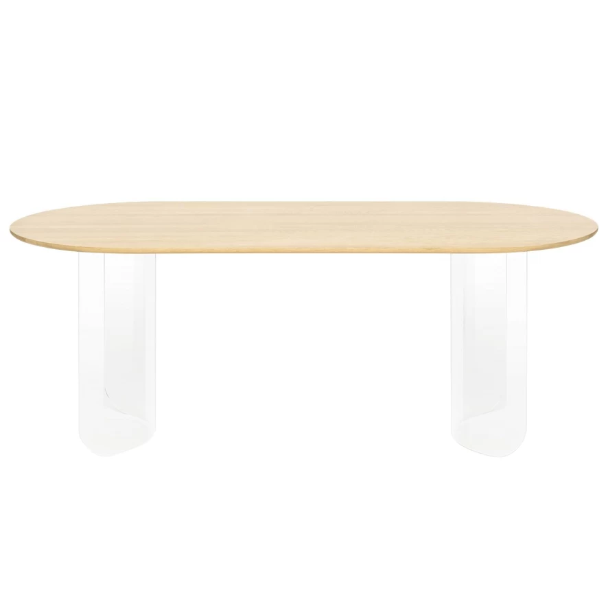 De Plateau eettafel 200×90 transparant van Fést Amsterdam heeft een lengte van 200 centimeter, een breedte van 90 centimeter en een hoogte van 74 centimeter. Deze eettafel heeft een transparant frame van kunststof en een tafelblad van massief eikenhout. Deze eettafel is geschikt voor zes personen. De Plateau eettafel 200×90 transparant van Fést Amsterdam is ook verkrijgbaar in uitvoeringen met gekleurde tafelbladen.