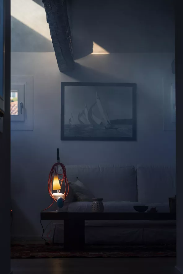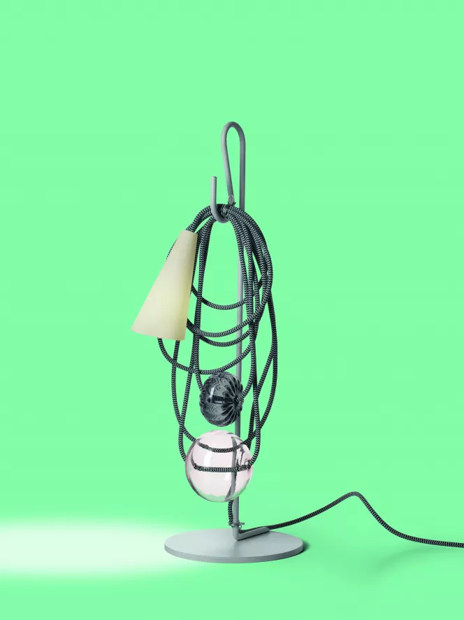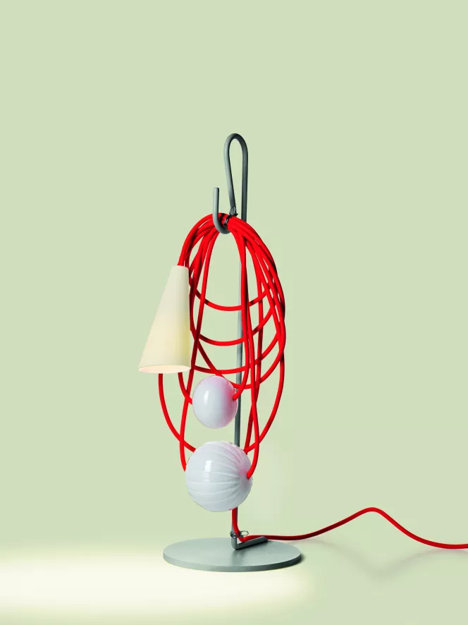 De Filo tafellamp van Foscarini is gemaakt van porselein, textiel, glas en gelakt metaal. De tafellamp is 20 centimeter breed en 58 centimeter hoog. Hij heeft een LED retrofit 5W G9 fitting. De lichtbron wordt meegeleverd. De lamp weegt 2,7 kilo. Op het snoer van de lamp bevindt zich een schakelaar. Dit snoer is 160 centimeter lang. De Filo tafellamp is beschikbaar in verschillende uitvoeringen.