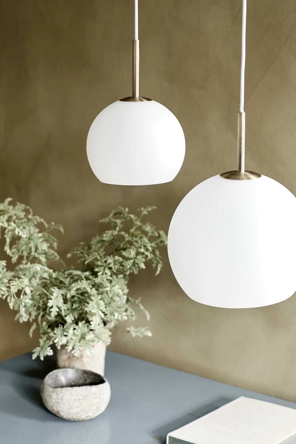 Dit is de Ball hanglamp opaal 25 van Frandsen, ontworpen door Benny Frandsen. De hanglamp heeft een bolle kap van prachtig opaalglas. De glazen kap heeft een diameter van 25 centimeter. Het snoer van de lamp is 300 centimeter lang. De lamp heeft een E27 fitting van messing, geschikt voor een lichtbron met een maximaal wattage van 25. Deze lichtbron wordt niet meegeleverd. Deze hanglamp is ook beschikbaar in een kleinere maat met een diameter van 18 centimeter.