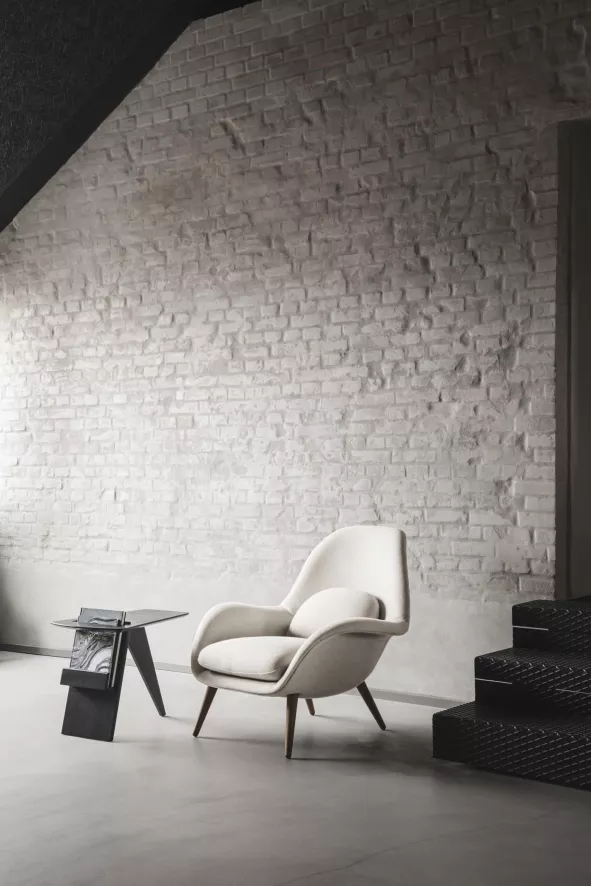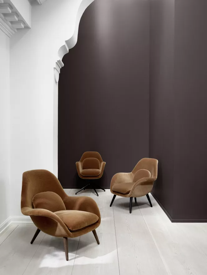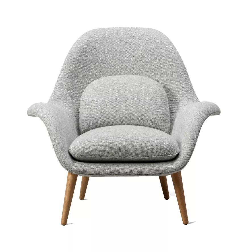 De Swoon fauteuil van Fredericia heeft een gewicht van 17 kilogram en is in verschillende uitvoeringen verkrijgbaar.
