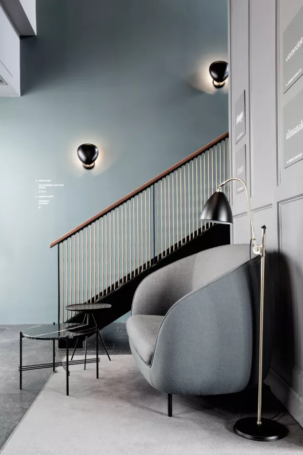 De Gubi Grossman Cobra wandlamp met stekker is ontworpen door Greta Grossman.