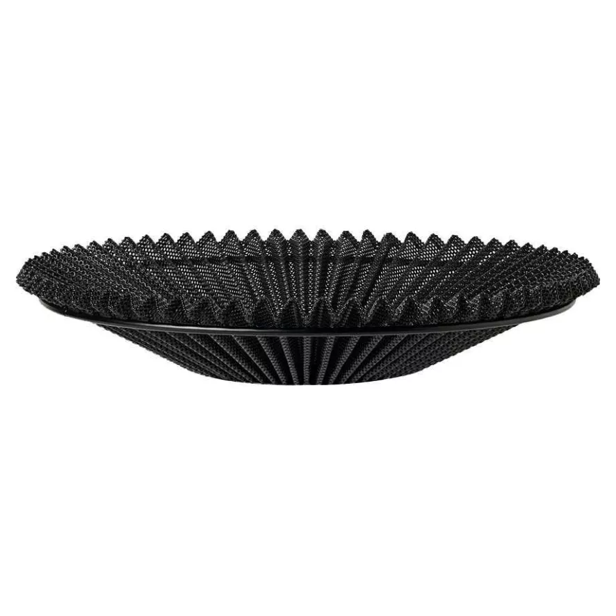 De Matégot fruitschaal van Gubi heeft een diameter van 37,5 centimeter en een hoogte van 7,5 centimeter. Je kunt voor de fruitschaal van Rigitulle kiezen uit twee verschillende kleuren: Venetian Gold en Midnight Black.