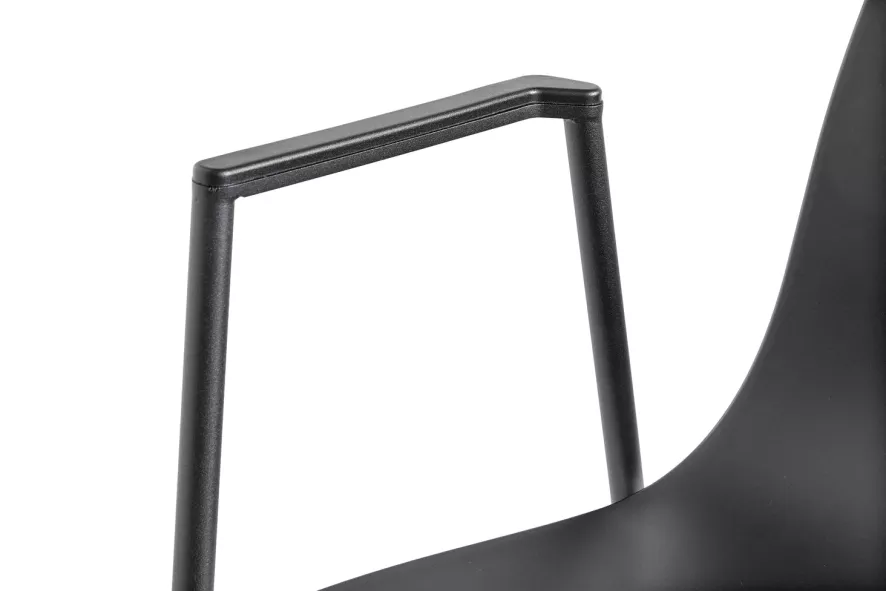 De stoel heeft een breedte van 60 centimeter, een diepte van 50 centimeter en een hoogte van 78 centimeter. De stoel heeft een zithoogte van 46 centimeter, een zitdiepte van 40 centimeter en de armleuningen hebben een hoogte van 64,5 centimeter. De stoel is gemaakt van polypropyleen en poedercoat staal en is stapelbaar tot 10 stuks. De stoel is voorzien van glijders voor een harde vloer en is verkrijgbaar in verschillende kleurvariaties.