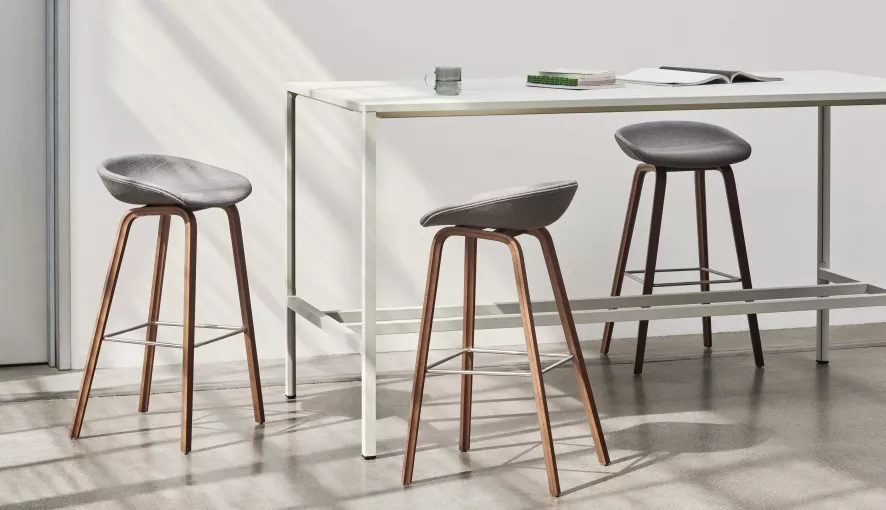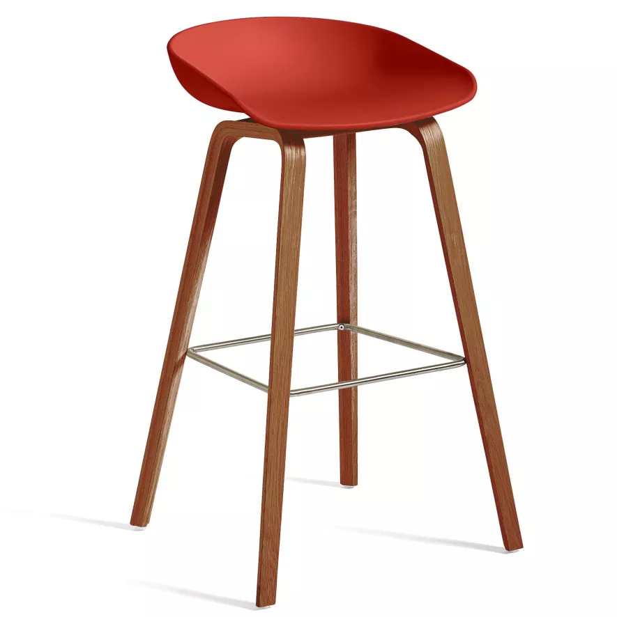 De kruk heeft een breedte van 50 centimeter, een diepte van 46 centimeter en een hoogte van 85 centimeter. De barkruk heeft een zithoogte van 75 centimeter en is daarmee geschikt voor aan een bar met een hoogte van 100 tot 105 centimeter. Deze barkruk heeft een onderstel van FSC-gecertificeerd walnotenfineer en is voorzien van standaard, plastic vloerbeschermers. Het onderstel is met een lak op waterbasis afgewerkt. De zitting is gemaakt van gerecycled plastic en heeft een effen kleur. De About a Stool AAS32 barkruk 75cm walnoot onderstel van Hay is in verschillende formaten en uitvoeringen verkrijgbaar.