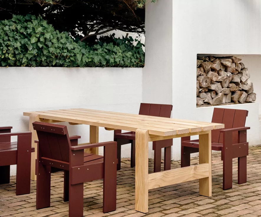 De Crate tuinstoel van HAY heeft een breedte van 57,5 centimeter, een diepte van 64 centimeter en een hoogte van 81 centimeter. De stoel heeft een zithoogte van 45 centimeter en een zitdiepte van 41 centimeter. Deze tuinstoel is gemaakt van FSC-gecertificeerd, massief dennenhout en is behandeld met een primer en een speciale outdoor coating waardoor de stoel geschikt is voor binnen-en buitengebruik. De Crate tuinstoel van HAY is voorzien van zwarte, plastic vloerbeschermers en is in verschillende kleuren en uitvoeringen verkrijgbaar.