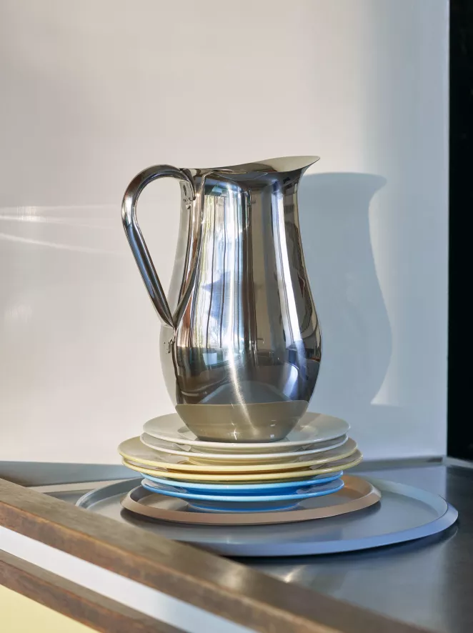 De HAY Indian Steel kan 3.25L heeft een diameter van 18 centimeter en een hoogte van 25 centimeter. De kan is gemaakt van roestvrijstaal en is voorzien van een schenktuit en handvat.