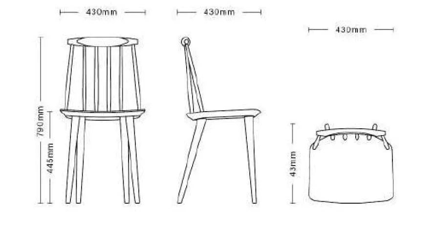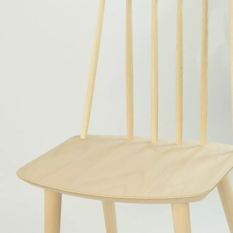 De Hay J77 stoel is gemaakt van stevig beukenhout met de afwerking met zeep behandeld (naturel) of in een kleur gelakt. De stoel heeft een zithoogte van 44,5 cm. De J77 is niet geschikt voor buiten.