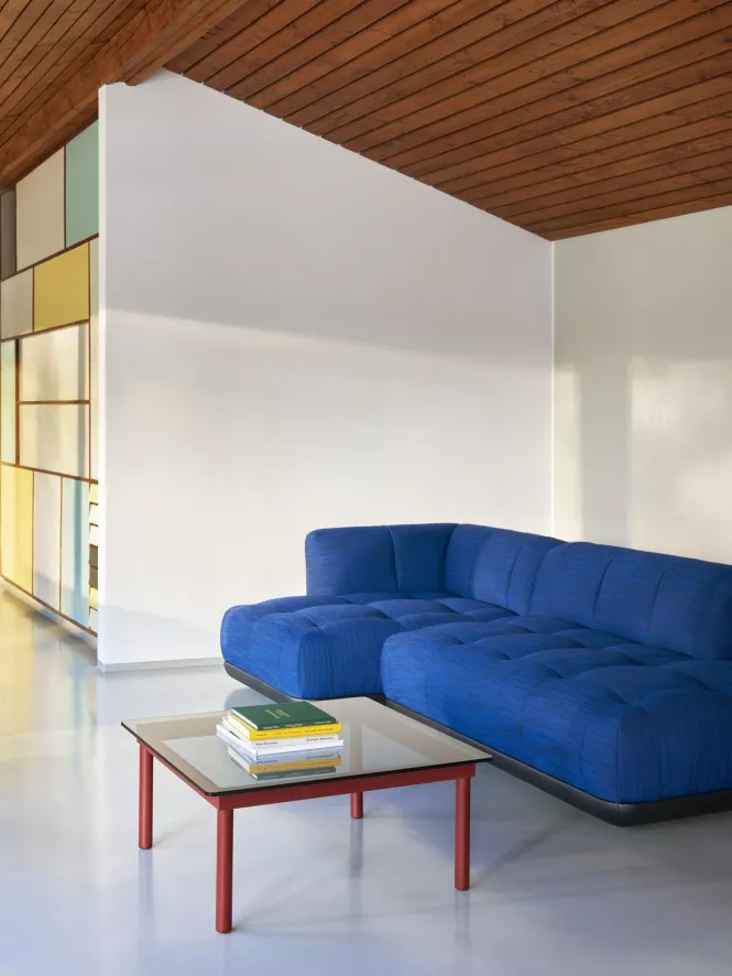 Hay Kofi Salontafel Rood Gelakt Eiken 80×80 Helder Glas