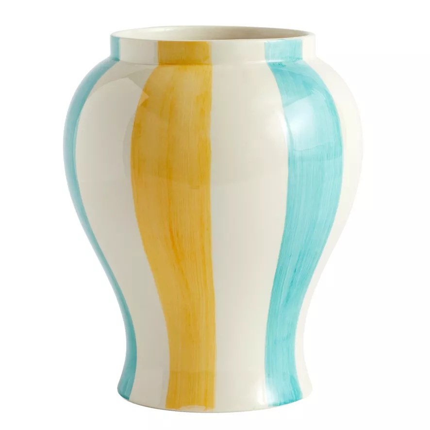 De Sobremesa vaas L groen/geel van HAY heeft een diameter van 19 centimeter en een hoogte van 25 centimeter. Deze vaas is gemaakt van porselein en is voorzien van een verticaal, gestreept groen en-geelkleurig patroon dat met de hand aangebracht is. De Sobremesa vaas van HAY komt uit de Sobremesa collectie en is in verschillende uitvoeringen verkrijgbaar.
