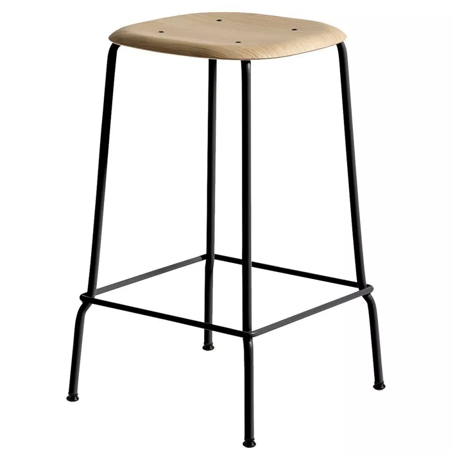 De Soft Edge Steel barkruk 75cm van Hay bestaat uit een onderstel van gepoedercoat staal en een zitting van eikenfineer. Deze barkruk is 75 centimeter hoog, 41,5 breed en 41,5 centimeter diep. De hoogte van de voetsteun bedraagt 29 centimeter. De Soft Edge Steel barkruk 75cm van Hay is verkrijgbaar in verschillende kleuren.