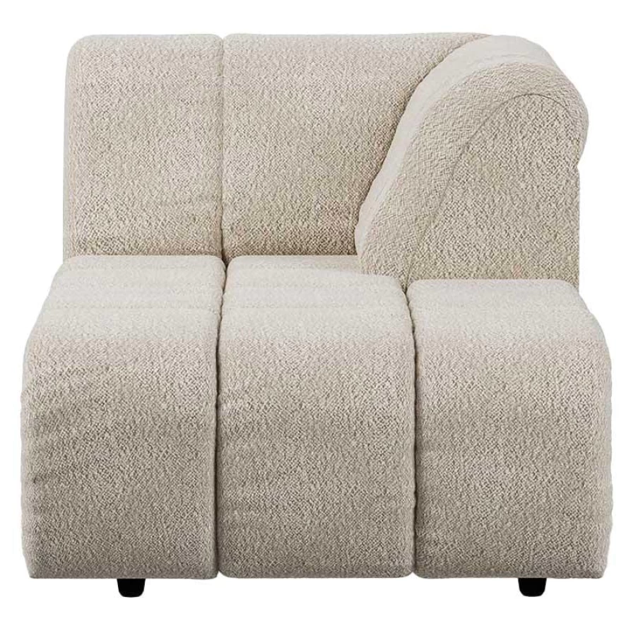 Het Wave bank element left divan van HKliving heeft een breedte van 98 centimeter, een lengte van 158 centimeter en een hoogte van 80 centimeter. De bank heeft een zitbreedte van 98 centimeter, een zitdiepte van 121 centimeter, een zithoogte van 41 centimeter, een armleuning-hoogte van 80 centimeter en een rugleuning-hoogte van 80 centimeter. Het element is gemaakt van 100% polyester. HKliving raadt aan om niet-vette vlekken met een pluisvrije doek of spons met warm water te verwijderen door op de vlek te deppen. Wanneer het nodig is kan er een beetje zeepwater met wat afwasmiddel gebruikt worden. Hierna raadt HKliving aan de bank weer met schoon water te reinigen. Het element is verkrijgbaar in verschillende kleurvariaties.