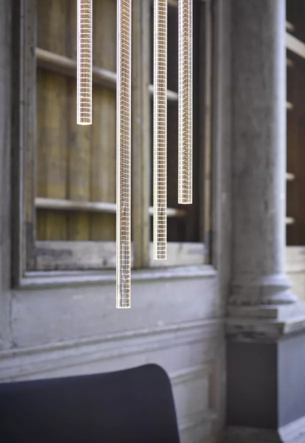 Deze hanglamp is gemaakt van gepoedercoat staal, aluminium en pmma. De lamp heeft een hoogte van 103.8 centimeter en een diameter van 4 centimeter. Het snoer heeft een lengte van 300 centimeter. In de lamp zit een LED-module verwerkt met een lichtopbrengst van 500 Lumen (7.5 Watt) en een kleurtemperatuur van 2700K. Je kunt een dimmer aansluiten op de lamp. De lamp is beschikbaar in twee verschillende kleuren en er is ook een horizontale variant beschikbaar. Je kunt het design van de lamp uitbreiden door de bijbehorende sleeve te kopen (zie bijpassende producten onderaan de pagina, beschikbaar in twee kleuren).