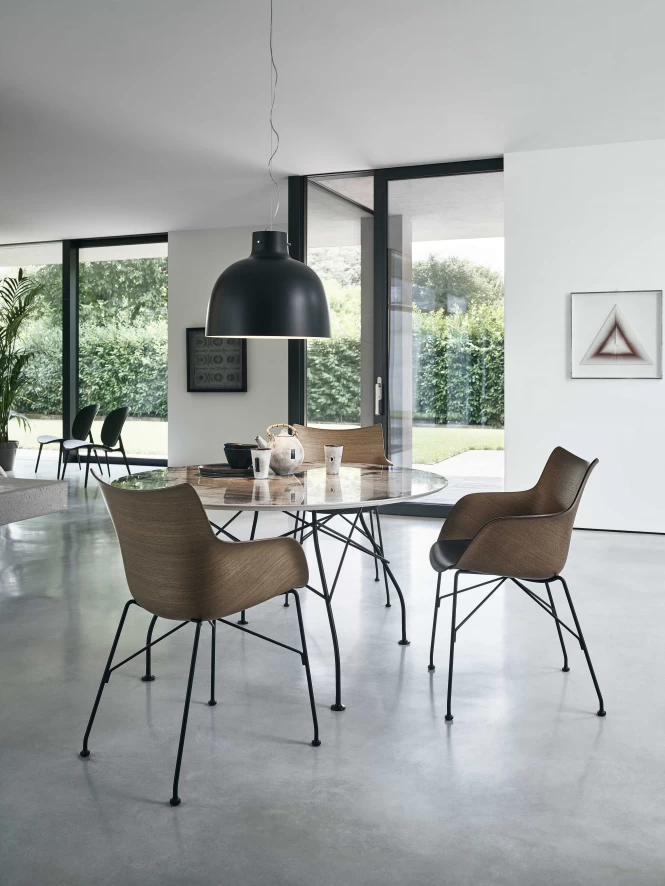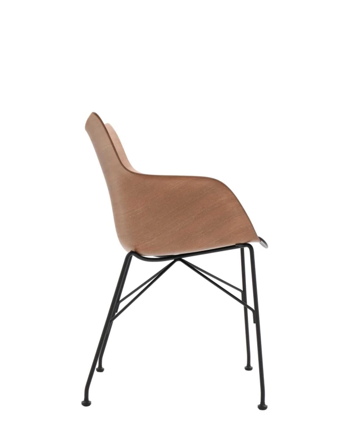 Kartell Q/Wood Stoel Met Armleuning Donker Eiken, Zwart, Chroom