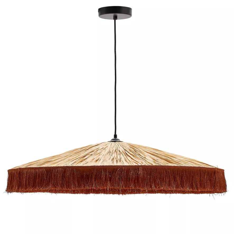 De Pollensa hanglamp Ø75 van Kave Home heeft een diameter van 75 centimeter, een hoogte van 10 centimeter en een gewicht van 1,35 kilogram. De lampenkap heeft een diameter van 75 centimeter en een hoogte van 10 centimeter. De afdekkap heeft een diameter van 10 centimeter en een hoogte van 2 centimeter. De kabellengte van de Pollensa hanglamp Ø75 is 85 centimeter. De lampenkap is gemaakt van hand gevlochten ratan.