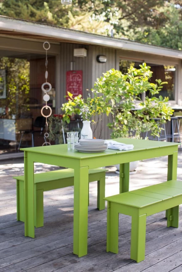 De Lollygagger tuintafel 142×71 van Loll Designs heeft een lengte van 142,3 centimeter, een breedte van 71,1 centimeter en een hoogte van 76,2 centimeter. De tafelpoten zijn 66 centimeter hoog en de afstand tussen de tafelpoten in de lengte bedraagt 119,4 centimeter. De afstand tussen de tafelpoten in de breedte bedraagt 47,8 centimeter. Lollygagger is volledig gemaakt van hergebruikt HDPE (plastic) en weegt 30,8 kilogram. Loll Designs is Cradle to Cradle-gecertificeerd. De tuintafel kan worden gereinigd met wat water en een sopje. Lollygagger is verkrijgbaar in verschillende kleuren.