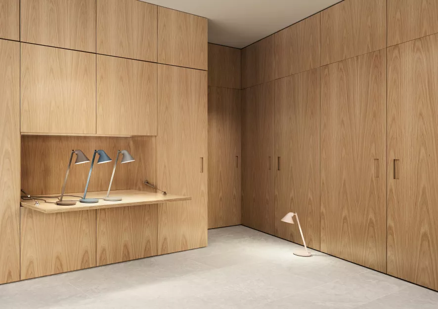 De NJP Mini tafellamp LED is gemaakt van staal en aluminium. De lamp is 41,5 centimeter hoog. De voet heeft een diameter van 16 centimeter en de kap heeft een diameter van 12,1 centimeter. Het snoer aan de lamp is 250 centimeter lang. De NJP Mini tafellamp is voorzien van een geïntegreerde LED module met een verbruik van 11 Watt, een lichtopbrengst van 418 Lumen en een kleurtemperatuur van 2700K. Via de ingebouwde dimmer op de lamp kun je de lichtsterkte van 100% tot 15% dimmen. Dankzij de timerfunctie schakelt de lamp na een bepaalde tijd automatisch uit. De timer is in te stellen op 4 uur of 8 uur. De NJP Mini tafellamp is beschikbaar in diverse kleuren.