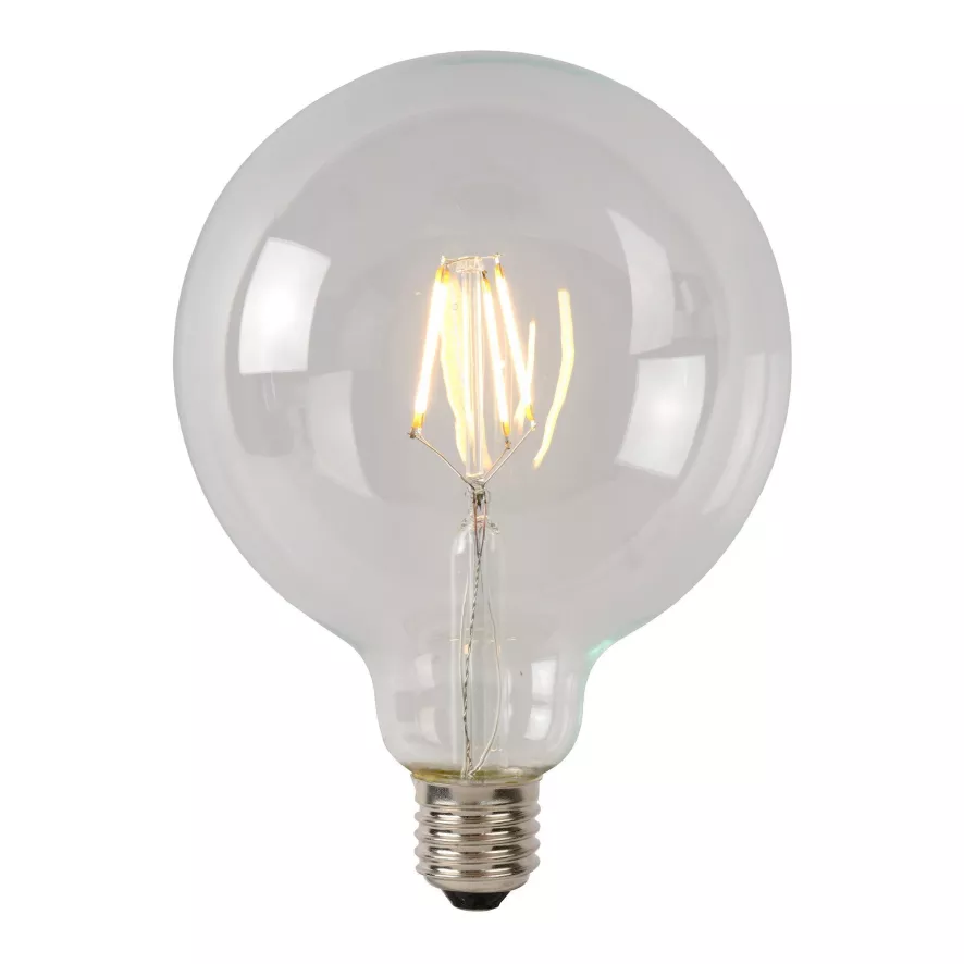 De G125 LED lichtbron E27 5W 2700K transparant dimbaar van Lucide is een filamentlamp. Deze lichtbron heeft een diameter van 12,5 centimeter en een hoogte van 17,5 centimeter. Deze bolvormige lichtbron is gemaakt van transparant glas en is dimbaar.