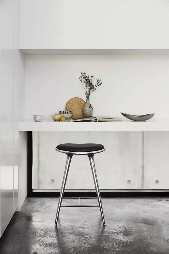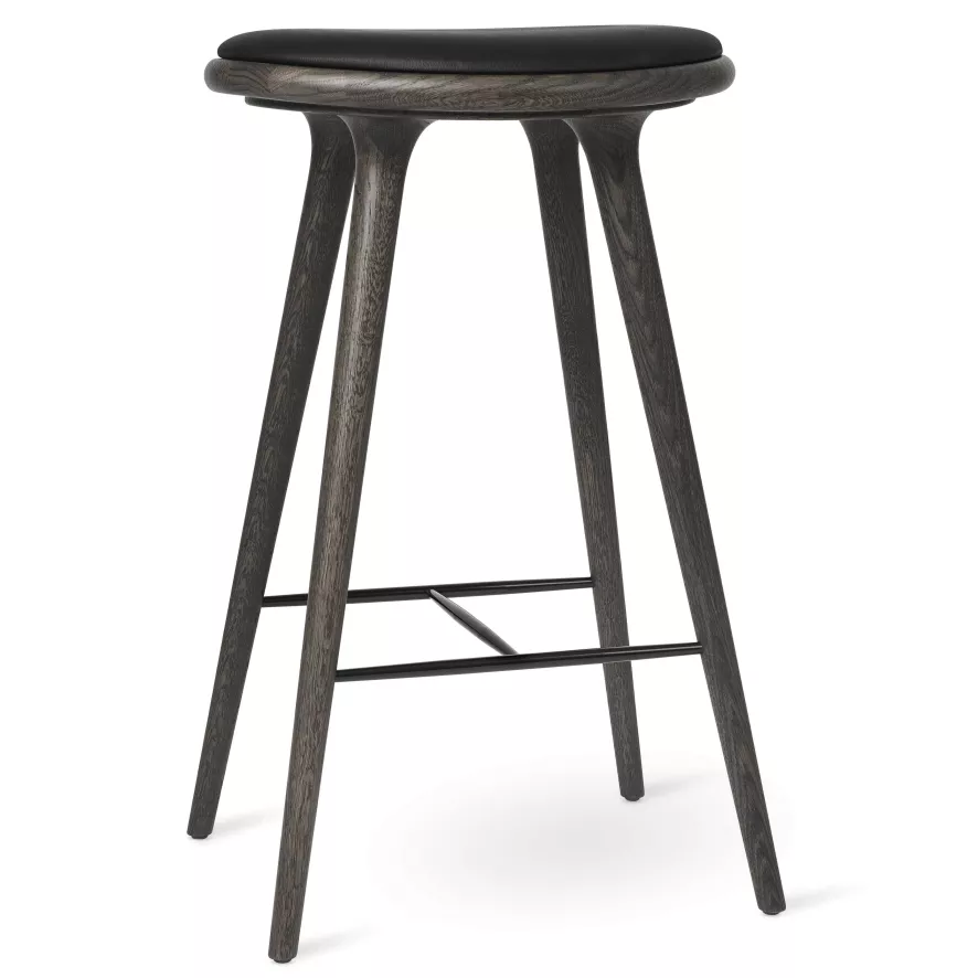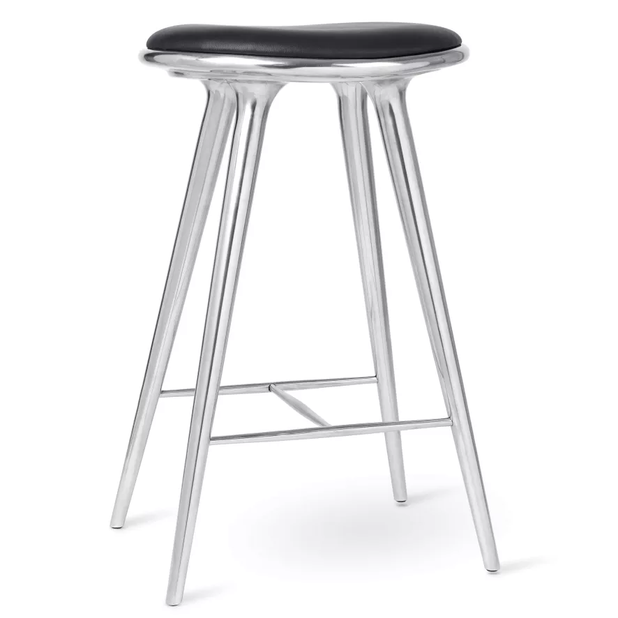 Mater Design High Stool Barkruk 74 Gerecycled Aluminium, Zwart Leer