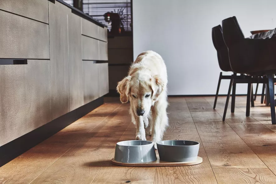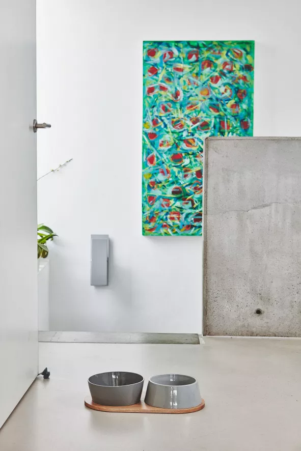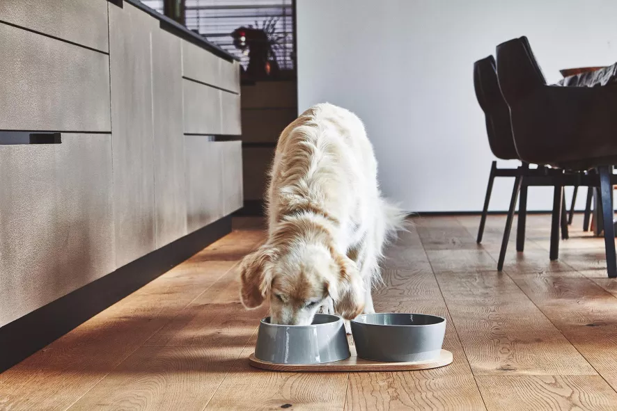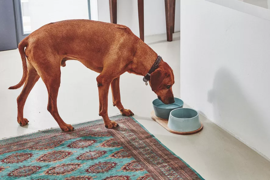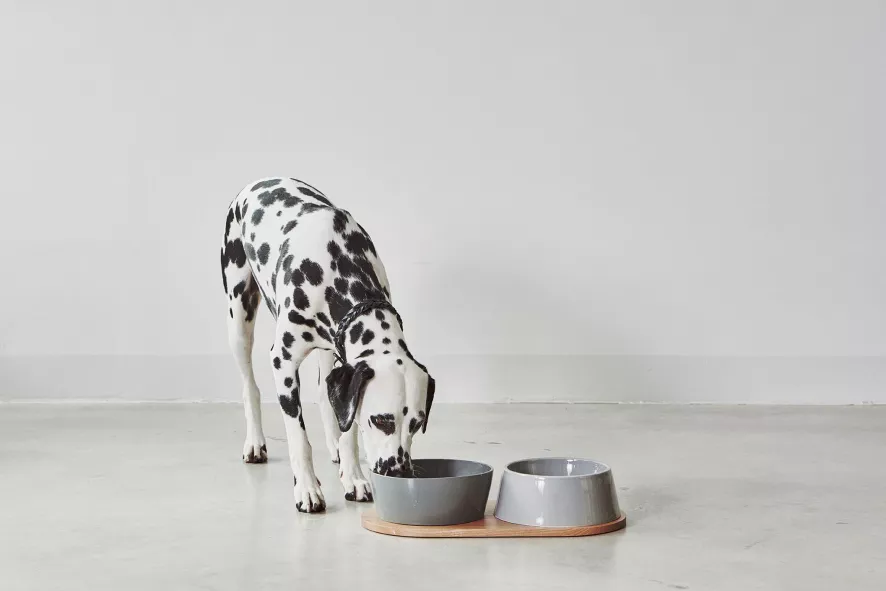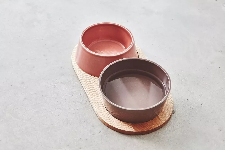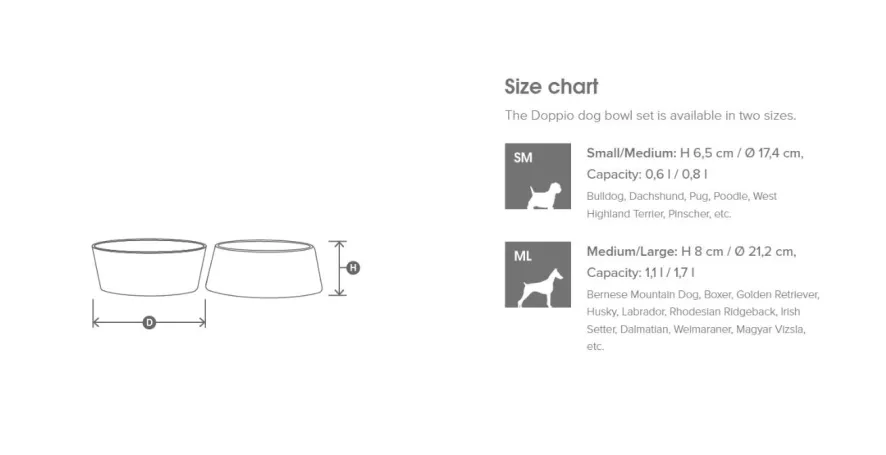 De Doppio hondenvoerbak is ontworpen door Hans Thyge & Co. De Doppio hondenvoerbak medium/large van MiaCara is 8 centimeter hoog, heeft een diameter van 21,2 centimeter en heeft een capaciteit van 1,1/1,7 liter. De bakken zijn geschikt voor de vaatwasser of kunnen met de hand schoongemaakt worden. Beide bakken zijn gemaakt van porselein en zijn in verschillende kleuren verkrijgbaar. De plank is 45,5 centimeter lang, 24 centimeter breed en 1,2 centimeter hoog en is gemaakt van eikenhout. De Doppio hondenvoerbak is er ook in een maatje kleiner.