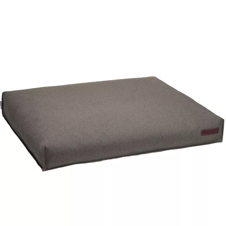 Het MiaCara Mare hondenkussen large is ontworpen door MiaCara in samenwerking met het Seaqual Initiative. Het Mare hondenkussen large van MiaCara heeft een lengte van 120 centimeter, een breedte van 90 centimeter en een hoogte van 12 centimeter. Het kussen heeft een afneembare en wasbare hoes die voor 100% uit gerecycled oceaanplastic bestaat. De hoes draagt het Seaqual Yarn duurzaamheidslabel. De hoes mag in de wasmachine gewassen worden op een temperatuur van 60 graden Celsius of mag met stoom gereinigd worden. De hoes dient na reiniging aan de lucht gedroogd te worden en mag niet in de droogtrommel. Het kussen is ook voorzien van een binnen kussen. De hoes hiervan is gemaakt van katoen en polyester. De vulling van het kussen is gemaakt van gerecycled polyurethaanschuim dat stabiel, duurzaam, elastisch en hypoallergeen is. Het binnen kussen mag met een mild wasmiddel, met de fijne was, in de wasmachine gewassen worden op maximum temperatuur van 60 graden Celsius. Het kussen dient hierna aan de lucht gedroogd te worden. Dit hondenkussen is geschikt voor Berner sennenhonden, Boxers, Golden Retrievers, Husky’s, Labradors, Rhodesian Ridgebacks, Ierse setters, Weimarse staande honden, Magyar Vizsla’s en andere grote hondenrassen. Het Mare hondenkussen large van MiaCara is in verschillende kleuren en formaten verkrijgbaar.