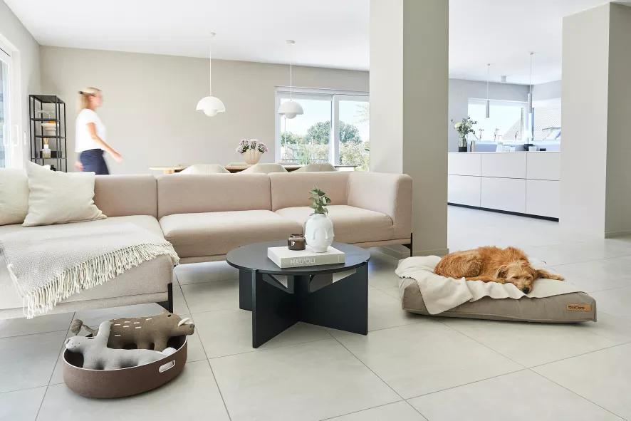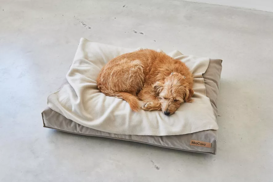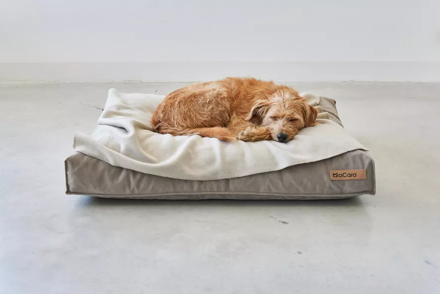 Het Velluto hondenkussen large van MiaCara heeft een lengte van 120 centimeter, een breedte van 90 centimeter en een hoogte van 12 centimeter. Dit hondenkussen heeft een afneembare en wasbare hoes die voor 60% uit katoen en voor 40% uit polyester bestaat. Deze hoes mag op 40 graden Celsius in de wasmachine gewassen worden of gestoomd worden. Na het reinigen dient de hoes aan de lucht gedroogd te worden en mag niet gestreken worden. Het binnen kussen is gemaakt van katoen en heeft een vulling van stabiel, duurzaam en hypoallergeen polyurethaan. Dit binnen kussen mag met een mild wasmiddel tot 60 graden Celsius in de wasmachine gewassen worden. Na het reinigen dien je dit binnen kussen goed te centrifugeren en daarna aan de lucht te drogen. Het binnen kussen mag eventueel tot 60 graden Celsius in de droogtrommel gedroogd worden. Let hierbij wel op dat het niet te droog wordt. Dit hondenkussen is geschikt voor Berner sennenhonden, Boxers, Golden Retrievers, Husky’s, Labradors, Rhodesian Ridgebacks, Ierse setters, Weimarse staande honden, Magyar Vizsla’s en andere grote hondenrassen. Het Velluto hondenkussen large van MiaCara is in verschillende kleuren en formaten verkrijgbaar.