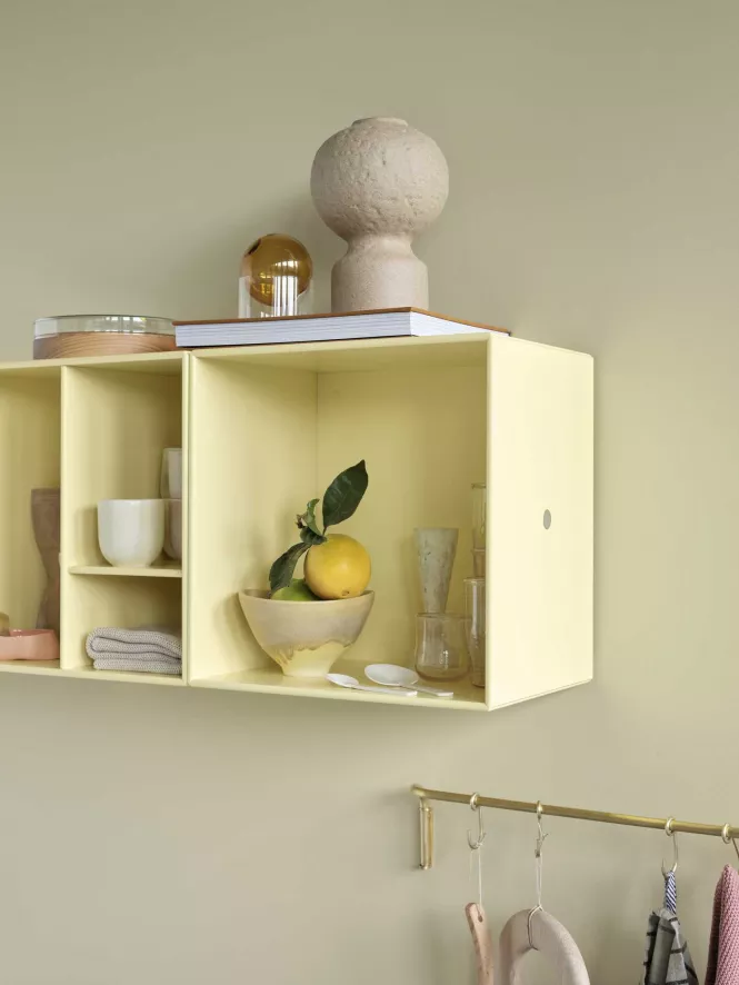 De Mini wandkast met deur van Montana heeft een breedte van 35 centimeter, een diepte van 25 centimeter en een totale hoogte van 35 centimeter. De wandkast is gemaakt van 8 millimeter dik, gelakt MDF. Deze wandkast is voorzien van twee ronde magneetjes met een chromen afwerking die de kastjes bij elkaar houden. Deze kast heeft een maximaal draaggewicht van 10 kilogram en wordt geleverd met poten en een ophangrail. De Montana Mini Wandkast met deur is verkrijgbaar in tien verschillende kleuren.