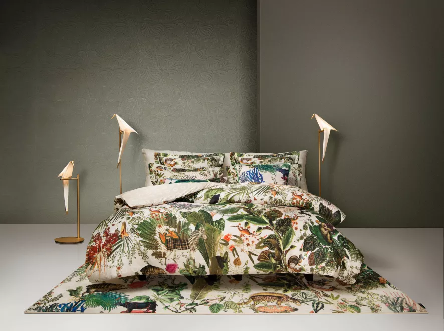 Het Menagerie dekbedovertrek is gemaakt van 100% katoensatijn met een draaddichtheid van 300 TC. Dit betekent dat er extra fijne garen zijn gebruikt. Het dekbedovertrek heeft een chique glans en voelt extra zacht en glad aan. Aan de voorzijde heeft het dekbedovertrek de exotische en botanische print, geïnspireerd op schetsen van inmiddels uitgestorven dieren. De achterzijde heeft een cirkelpatroon dat geïnspireerd is op de huid van de uitgestorven Umbrella Squid. Het dekbedovertrek is 260 centimeter breed en 220 centimeter lang en is daarmee geschikt voor een dekbed met een lengte van 200, 210 of 220 centimeter. Het dekbedovertrek heeft over de gehele breedte aan beide zijden een dubbele instopstrook. Er worden twee kussenslopen meegeleverd met een lengte van 70 centimeter en een breedte van 60 centimeter. De kussenslopen hebben een Oxford rand en platte bies. Het dekbedovertrek kan tot 60 graden worden gewassen, is geschikt voor in de droger en kan gestreken worden. Het Menagerie dekbedovertrek is in verschillende maten verkrijgbaar.