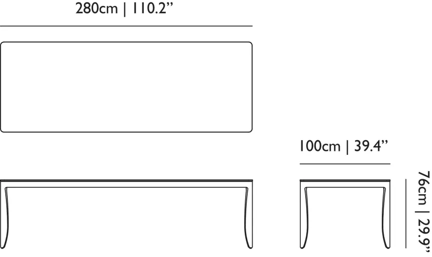 | Afmetingen | (l) 280 x (b) 100 x (h) 76 cm |