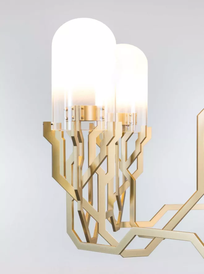 Dit is de Plant Chandelier kroonluchter van het merk Moooi, gemaakt van staal en glas. De lamp heeft een breedte van 90 centimeter, een diepte van 78 centimeter, een hoogte van 80 centimeter en weegt 20 kg. Vanaf het plafond gemeten is de totale hoogte van de lamp 105 centimeter. De kroonluchter is voorzien van een geïntegreerde LED-module met een lichtopbrengst van 1315 lumen (16W) die een warm wit licht verspreid.