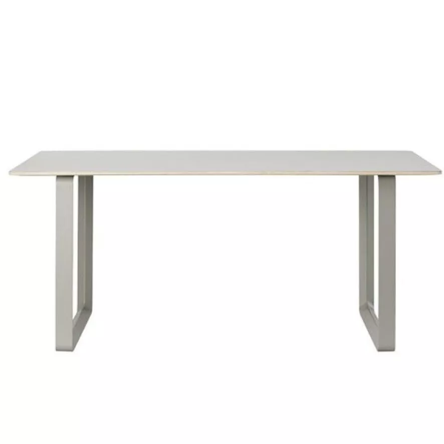 Het Muuto 70/70 tafel is verkrijgbaar in drie maten. Maat small die goed als bureau te gebruiken is heeft een lengte van 170 centimeter, een breedte van 85 centimeter en een hoogte van 73 centimeter. Bij maat large is de lengte 225 centimeter, de breedte 90 centimeter en de hoogte 73 centimeter. Bij maat extra large is de lengte 255 centimer, de breedte 108 centimeter en de hoogte 73 centimeter. De frames van de tafel zijn gemaakt van aluminium en onder hoge druk gegoten. Het tafelblad is gemaakt van multiplex met een linoleum of laminaat oppervlak. Het Muuto 70/70 bureau is leverbaar in verschillende kleuren.