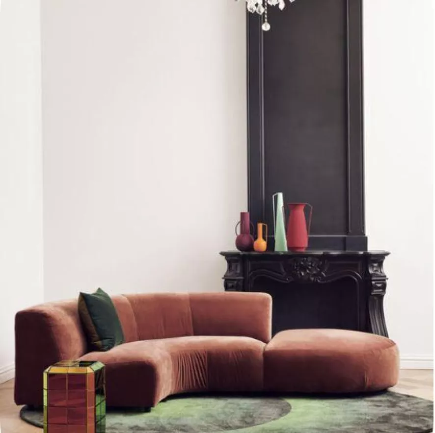 De A-Round-U bank poef rechts fluweel van POLSPOTTEN heeft een breedte van 100 centimeter, een diepte van 100 centimeter en een hoogte van 46 centimeter. De A-Round-U bank poef heeft een houten frame, kunststof zwarte poten en is bekleed in een donkerbruine stof gemaakt van 100% polyester die fluweelzacht aanvoelt.