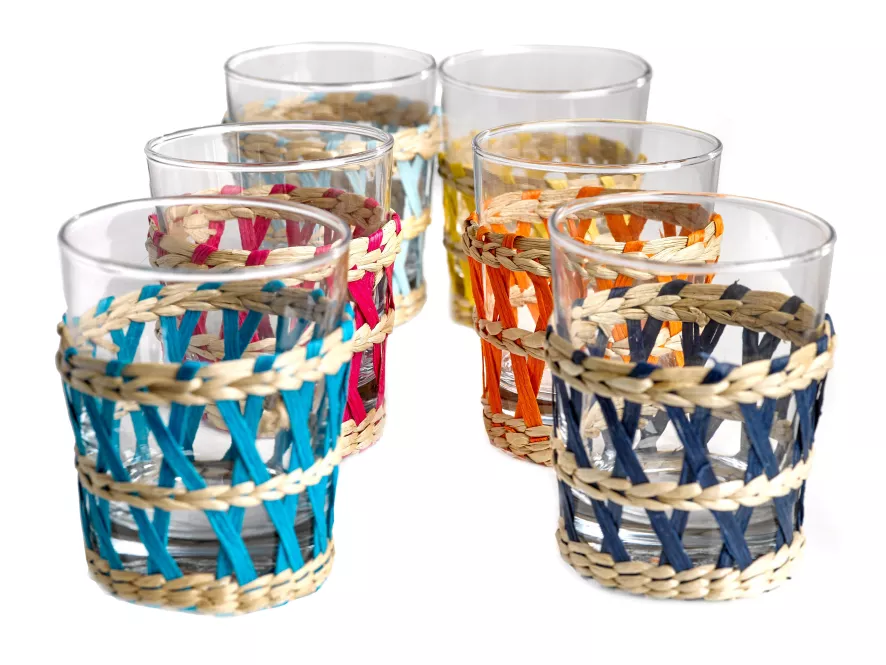 De Reed glazen set van 6 van POLSPOTTEN bestaat uit zes glazen. Ieder glas heeft een diameter van 8 centimeter en een hoogte van 9,5 centimeter. De drinkglazen zijn gemaakt van glas en zijn voorzien van een gekleurd, riet gevlochten hoesje. Deze glazen dienen met de hand gewassen te worden. De Reed glazen set van 6 van POLSPOTTEN komen in een geschenkverpakking.